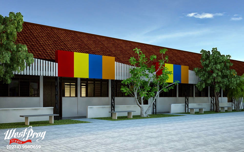 Hal yang pertama kali kami pikirkan pertama adalah area gerbang  depan masuk sekolah yang perlu dirubah karena kurang representatif, selain juga permainan cat dan ornamen pendukung pada fasade bangunan. Penambahan Playground dan kandang untuk pemeliharaan hewan agar anak anak bisa saling berinteraksi juga tak luput dari desain. Dibuat kalem tapi juga menarik anak anak mengingat yang akan menjadi murid tidak hanya anak anak TK tapi juga SD dan SMP. Warna cerah banyak digunakan selain membuat efek yang terasa segar dan menarik minat anak juga menjadi ciri dari bangunan itu.
